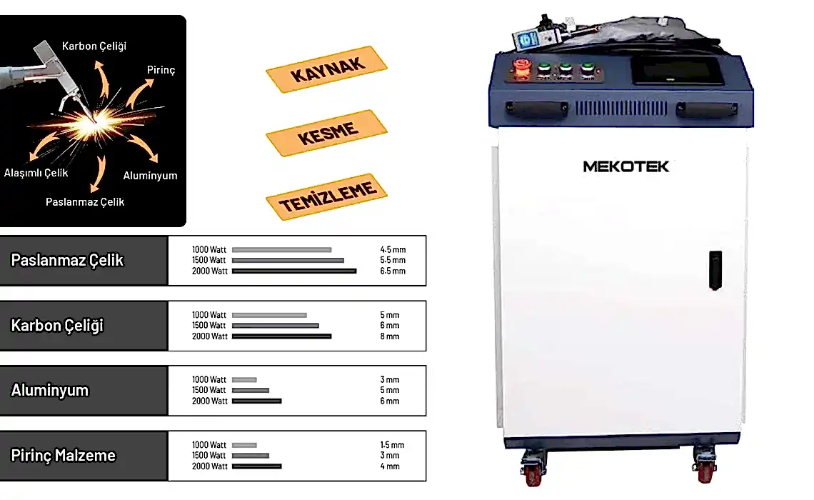 | Kalınlık | 500 Watt | 1000 Watt | 1500 Watt | 2000 Watt |